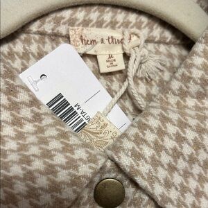 Stylish beige houndstooth jacket. Features classic snap button details, perfect for all the neutral girls.