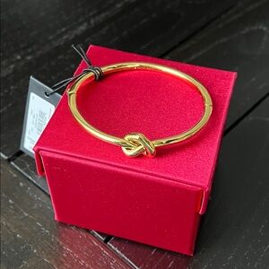 This elegant gold Kate Spade bangle bracelet features a stylish heart design, perfect for adding a touch of sophistication to any outfit. New with tag.