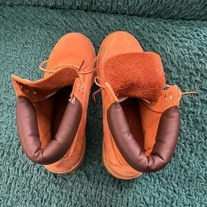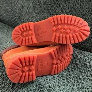 Vibrant orange boots with sturdy lace-up design. Perfect for outdoor wear.