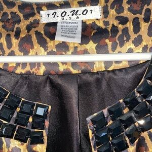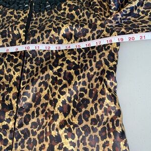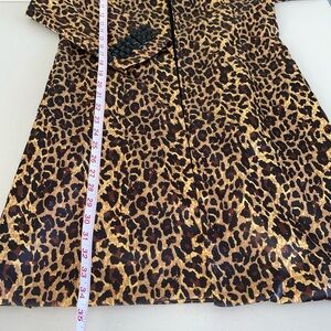 This RARE Leopard Print Over Coat is a statement piece that will turn heads. The embellished collar and sleeves add a touch of glam to the coat, while the studded accents give it a trendy edge. Made of polyester with a satin fabric type, this coat is perfect for various occasions from casual to formal. The 3/4 sleeves and open closure make it comfortable and versatile for travel, parties, or everyday wear. The multicolor animal print design is bold and eye-catching, making it a must-have addition to any woman's wardrobe.