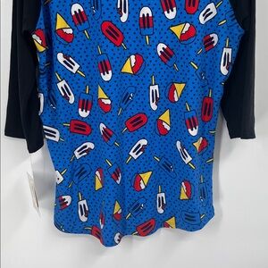 Lularoe Black and Blue Ice Cream Print Randy Shirt Size Large