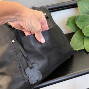 ENNUE Italian made genuine leather shoulder handbag purse black soft luxurious retail$450