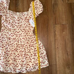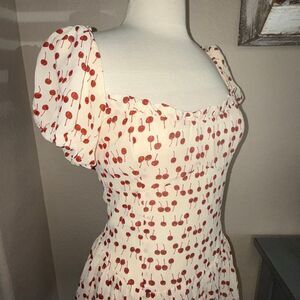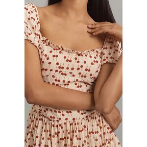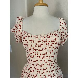 NWT Reformation x Anthropologie Womens Cherry Print Smocked Trim Davonne Mini Dress Cream Sz 8