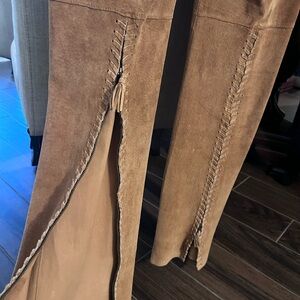 Arden B. Leather Suede Split Flare Zip Back Pant Legs Boho Y2K Festival Size 8