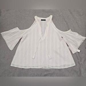 Maven West Ivory Cold Shoulder Boho Blouse Tassel Tie Crochet Sleeve Size Small