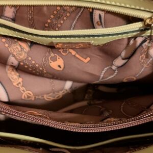 Again. This item was not manufactured by Michael Kors. 🚩 🚫 Handles are the wrong shape. Exterior metal zipper pulls should have Michael Kors name. Interior name tag should be heat stamped with Michael Kors name, not a metal nameplate. That brown printed lining has never been used in any authentic Michael Kors merchandise. Where's the authenticity tag that should be sewn into the side lining?