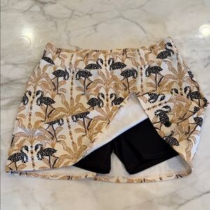 This fun and functional skort features a beautiful pattern in cream, taupe and black. Perfect for any brunch, a walk or travel!