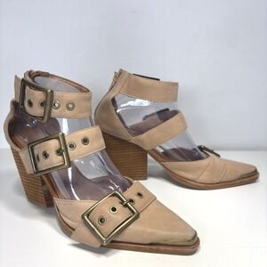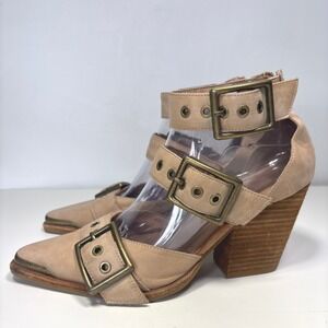 Free People x Jeffrey Campbell Nude Leather Strappy Block Heel Booties Size 8