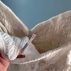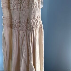 This elegant cream strapless dress is perfect for any special occasion. Its flowing design and delicate details offer a sophisticated look. Ideal for evening events or weddings.