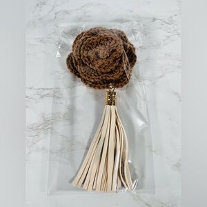 Brown Crochet Flower Bag Charm With Tassel
