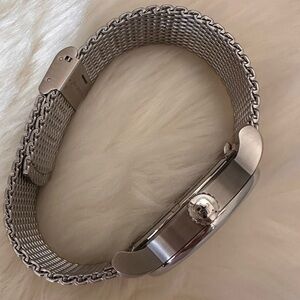 Stylish Wenger watch with a stainless steel mesh band. White dial with bold black numbers and date feature.