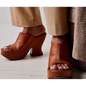 NEW FREE PEOPLE INTENTIONALLY BLANK Sz 41 RAVEN PLATFORM HEEL MULE TAN LEATHER