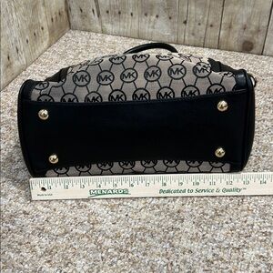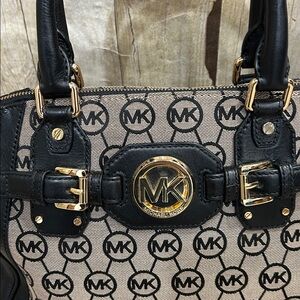 Stylish Michael Kors satchel with iconic logo pattern. Features black leather accents and gold hardware. Package is a new condition. I only carried it a few times. I never used the strap to be honest. I can’t even remember if it was inside the bag when I bought it so it’s not included. I did buy from my local TJ Maxx for 149.00
