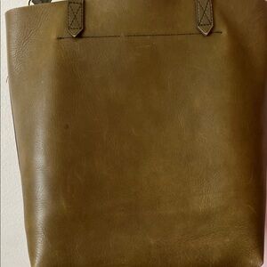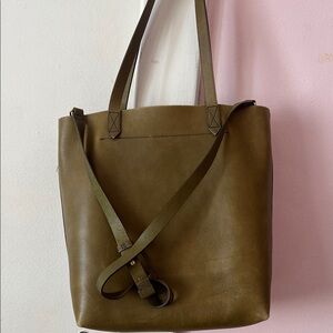 Stylish Madewell medium transport tote in olive green. Features a large front pocket. Perfect for everyday use.
