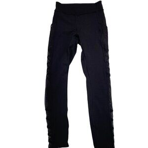 Lululemon Black Side Ladder Mesh Leggings Side Pockets Size 6 Yoga Preowned
