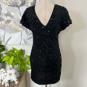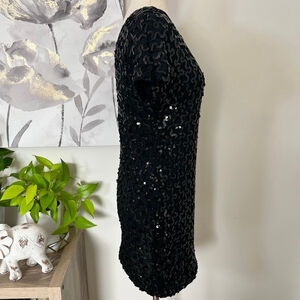 Vintage Black Sequin Mini Dress Petite Lanza Cocktail Party Fairy Goth USA