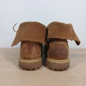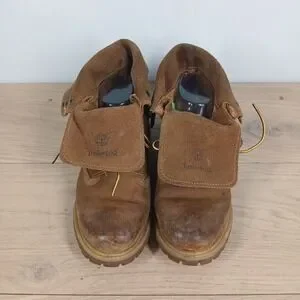 Rugged Timberland boots crafted from durable brown leather with a sturdy lug sole. Classic workwear silhouette designed for outdoor wear and everyday utility style.