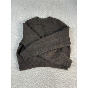 H&M Cardigan Sweater Womens XL Brown Mohair Wool Blend V Neck Fuzzy Cropped