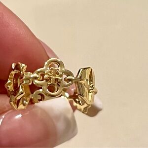 Tory Burch clover ring size 8. Simple and pretty. 18k gold plated. Perfect for any occasion. I do have matching bracelet in my shop if interested. Dustbag included. No returns and no international shipping.