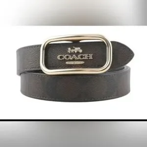 Coach Morgan belt had a rectangular buckle design and is ideal for a range of outfits and occasions. Material is coated canvas with signature Monogram.