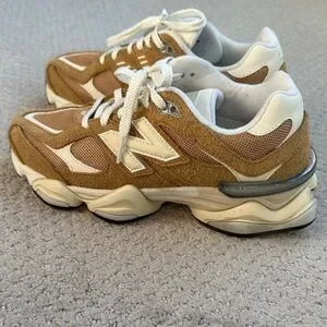 Stylish New Balance sneakers in tan and cream. Ideal for casual wear.
