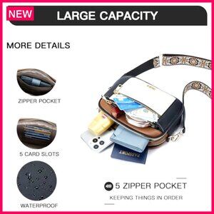 Fit: Adjustable wide strap for crossbody or shoulder carry