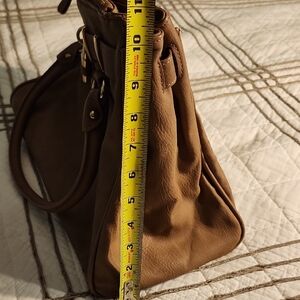 ALDO shoulder bag with three separate compartments; one open large one in the middle and two zippered pockets. Inside has one additional zipper pocket and two slots. Top has magnetic closure. This bag is in great pre owned condition, clean with no smells or damage.