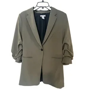 H&M Oversized Blazer Jacket Gathered Sleeve Olive Green Women's Small