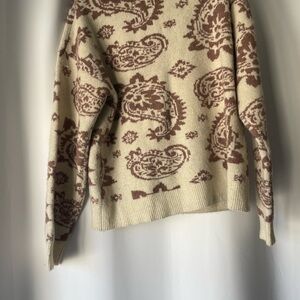 SIMONS Elegant Cream and Brown Paisley thick Sweater by Simon’s size small NWOT