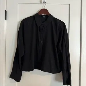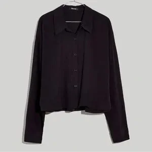 A cropped take on the classic button-up with a shrunken shirttail hem and relaxed shoulders. Made of our supersoft and drapey Lusterweave TENCEL™ lyocell-blend twill, it can do the office and date night too.