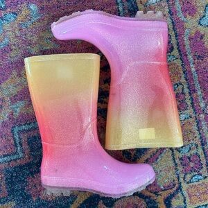 Cat & Jack | Girls Pink/Yellow Ombre Glitter CeCe Calf Length Rain Boots Size 4