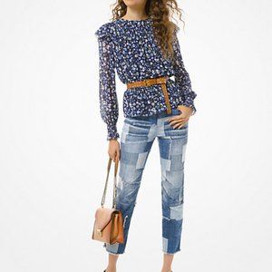 NWT Michael Kors Floral Smocked Georgette Blouse - Size XL
