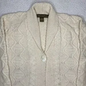 Inis Craft Merino Wool Cable Knit Cardigan: Size Medium