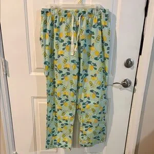 Old Navy Lemon Print Lounge poplin Pants Yellow Blue pink drawstring elastic