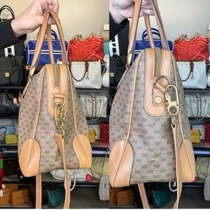 Gucci VINTAGE Boston Micro GG Pattern Brown and Tan Satchel COA