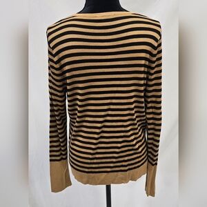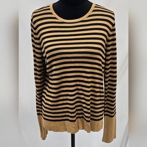 Eileen Fisher women M round neck sweater silk blend preppy striped french career, academia. 90% tencel, 10% silk.
