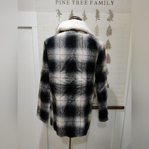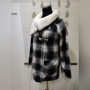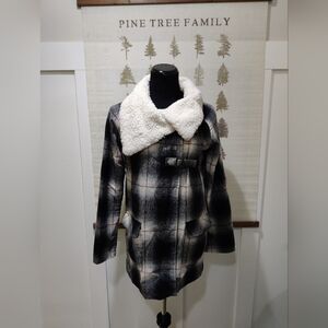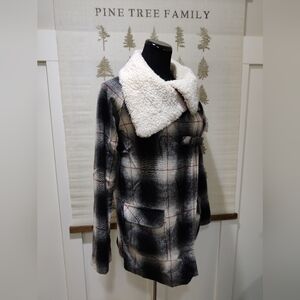 Billabong Wool Blend Plaid Cape Coat Sherpa Collar Buckle Closure -Medium