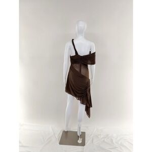 Ronny Kobo Brown One Shoulder Ruched Sheer Draped Mini Dress Size L