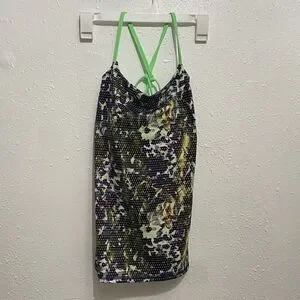 Lululemon Dancing Warrior Tank Top Womens 2 Floral Print Green Shelf Bra Active