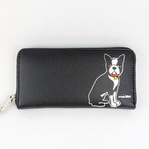 marc tetro Boston Terrier Wallet Clutch Zip Around PVC Saffiano Black NWOT