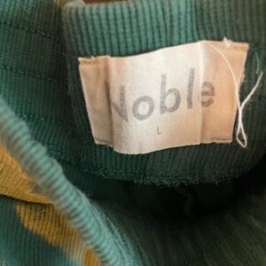 Stylish and comfortable, color is a bright forest green. Almost a cord but more comfortable with a stretch waist.