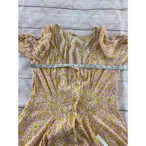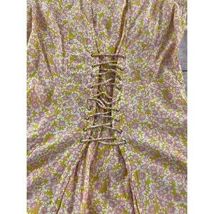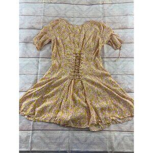 Free People Women's Yellow Floral Lace Up Mini Dress - Medium