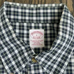 Vintage Brooks Brothers 90s Navy Plaid Button-Down Dress Casual Shirt Men Large