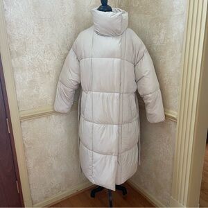 MANGO Ivory Midi Puffer Winter Coat Blanket Wrap around with Belt and Ho…