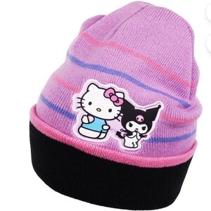 Purple, pink, and black with stripes. Black soft and warm interior.