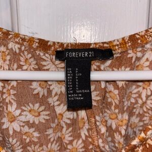 Charming brown blouse with floral pattern. Features ruffled sleeves and a relaxed fit. Ideal for casual wear.