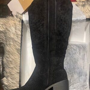 Chic black boots with a touch of sparkle. Perfect for elevating any outfit.