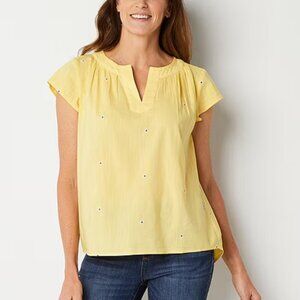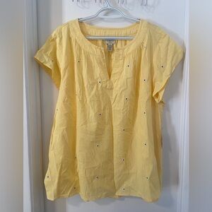 St John's Bay NWT butter yellow embroidered relaxed fit blouse XL