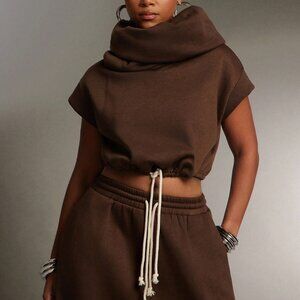 Add a relaxed, versatile piece to your spring and fall collection with this brown hooded crop sweatshirt. Offering a loose fit and regular hem for easy movement, The high‑neck hood and batwing sleeves provide extra coverage while keeping the look casual. Designed as a pull‑over, this multi‑wear top works well layered over tees or under jackets, delivering comfortable style for everyday outings.