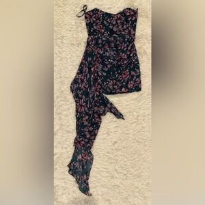 NEW Katie May Chasing Dawn Draped Floral Satin Strapless Minidress sz L